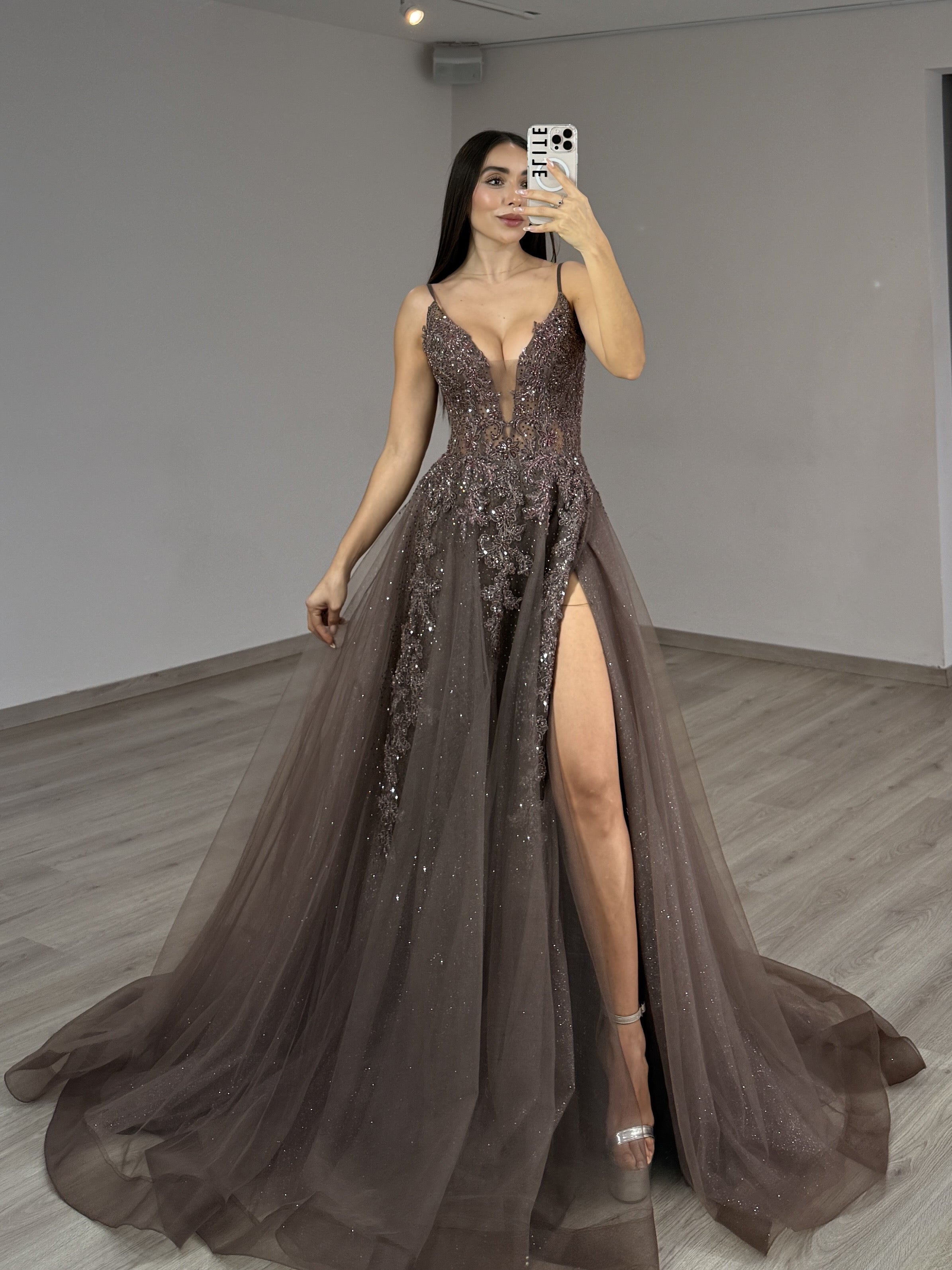 Ponte este vestido de línea A iridiscente encantado y siéntete como parte de un cuento de hadas. Este hermoso y caprichoso vestido presenta un escote pronunciado, tirantes delgados y un corsé con cordones en la espalda. El corpiño de encaje distintivamente hermoso está adornado con un brillo iridiscente que brilla a la luz. Prepárate para tu ocasión especial con esta falda de tul brillante en capas que te mantendrá bailando toda la noche. Este encantador vestido te hará sentir como la realeza en tu día especial con una silueta que cualquier princesa en entrenamiento estaría orgullosa de tener. Haz una declaración en el baile de graduación o en un evento especial con nuestro encantador vestido iridiscente de línea A.
