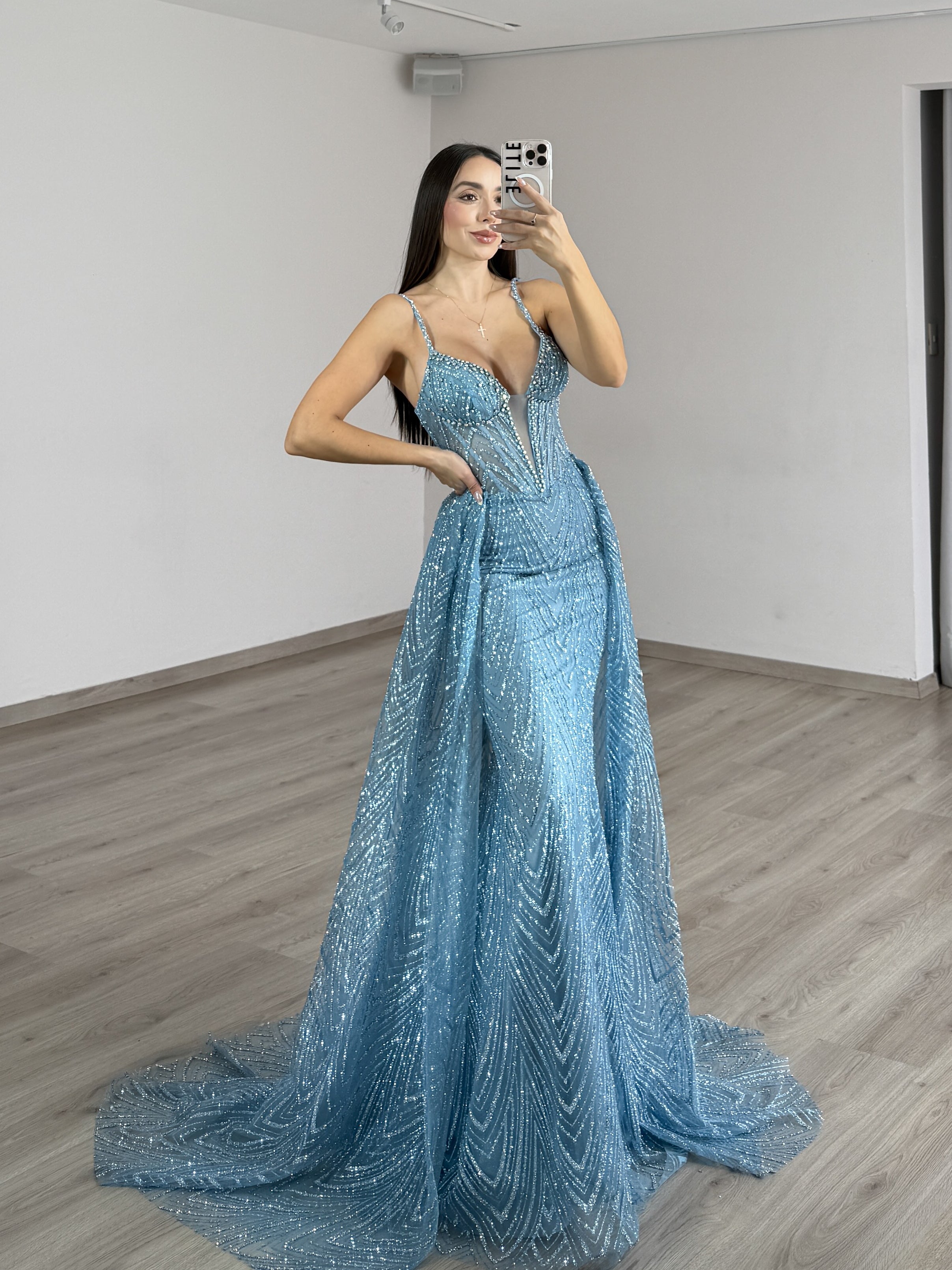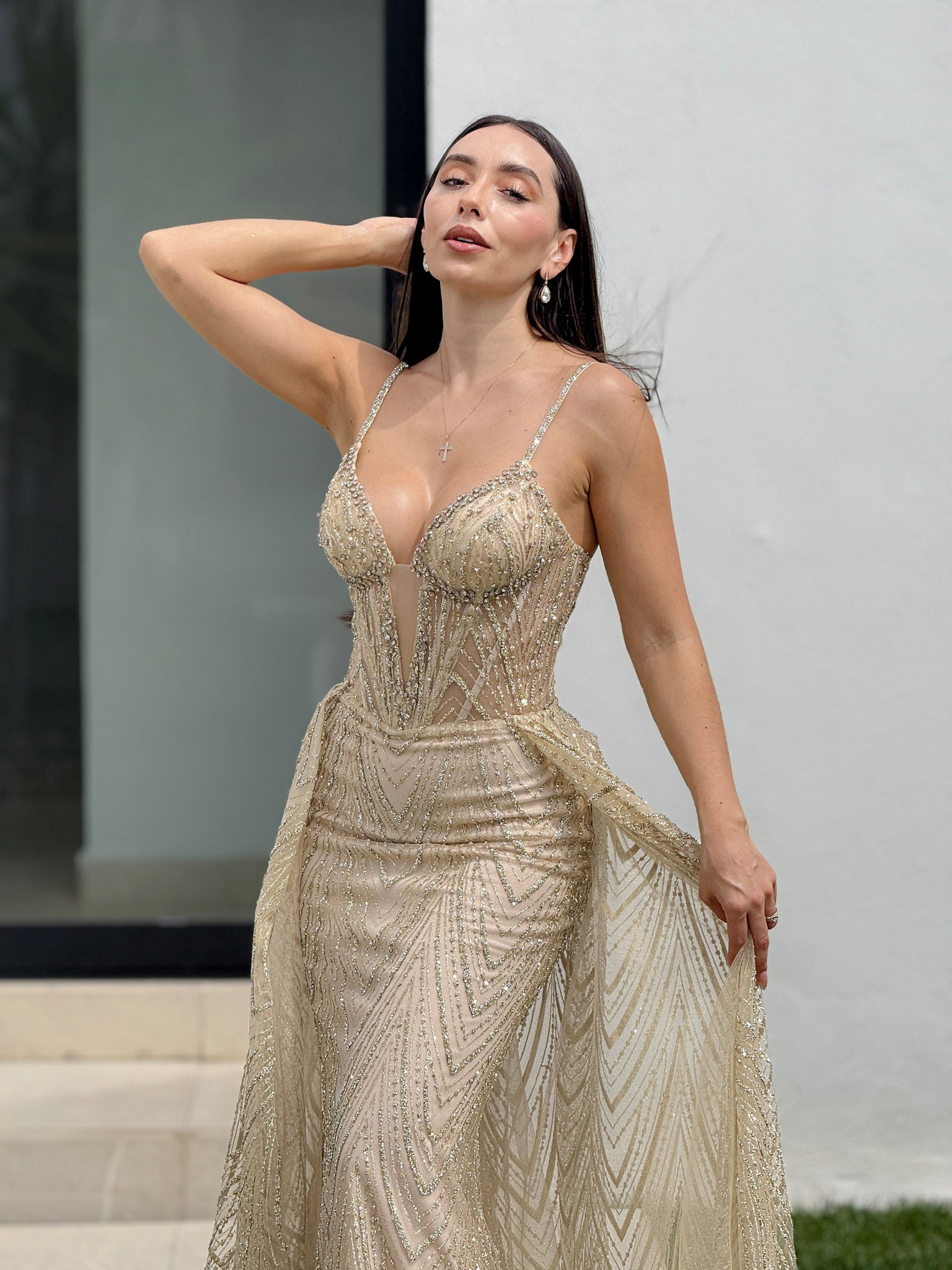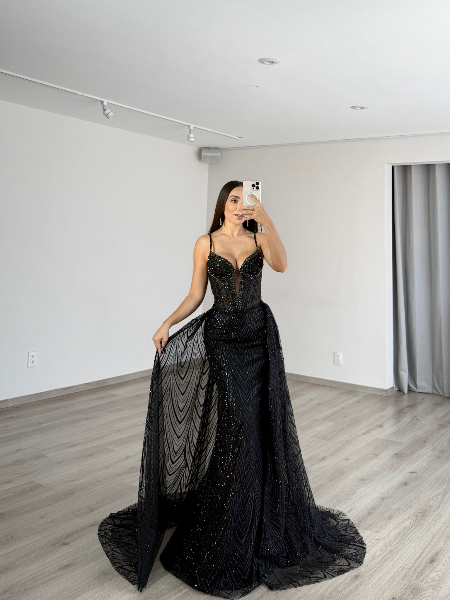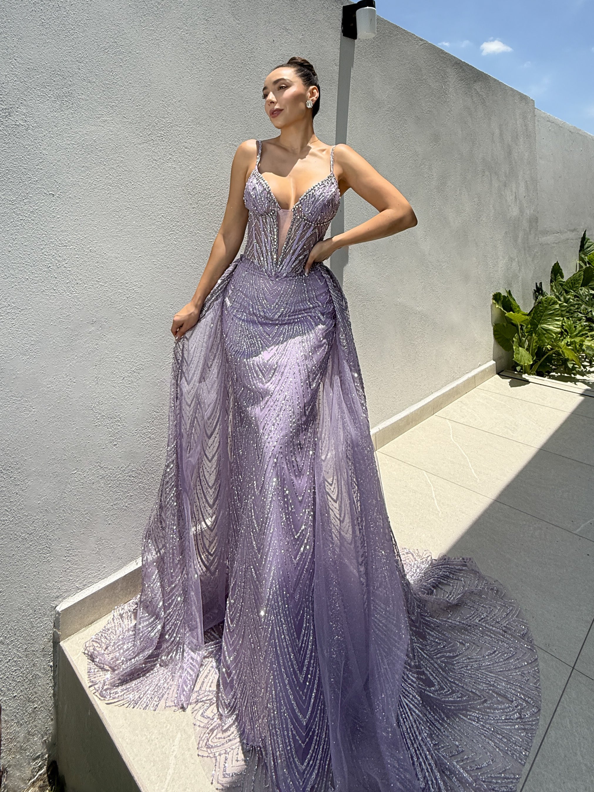 Eleva tus conjuntos formales con este vestido de alta costura. Confeccionado con tul de purpurina y cenefas de cristal, este diseño estructurado te asegura un look elegante y glamuroso en cualquier evento. Además, su sobrefalda de tul en capas añade un toque de drama y fluidez a tu figura. Ideal para bailes de graduación y ocasiones especiales, este vestido te hará sentir confiada y sofisticada en todo momento.